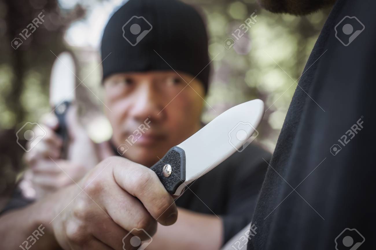 Knife Vs Knife Fight Lameco Astig Combatives Instructor Demonstrates Self Defense Disarming Technique Against Threat And Knife Attack Filipino Martial Arts Ecrima Kali Arnis Stock Photo Picture And Royalty Free Image Image